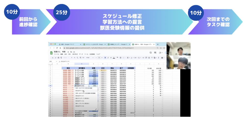 獣医受験からいまの状況などを加味し、合格までを逆算したあなた専用の学習スケジュールを獣医合格実績のある講師が作成。