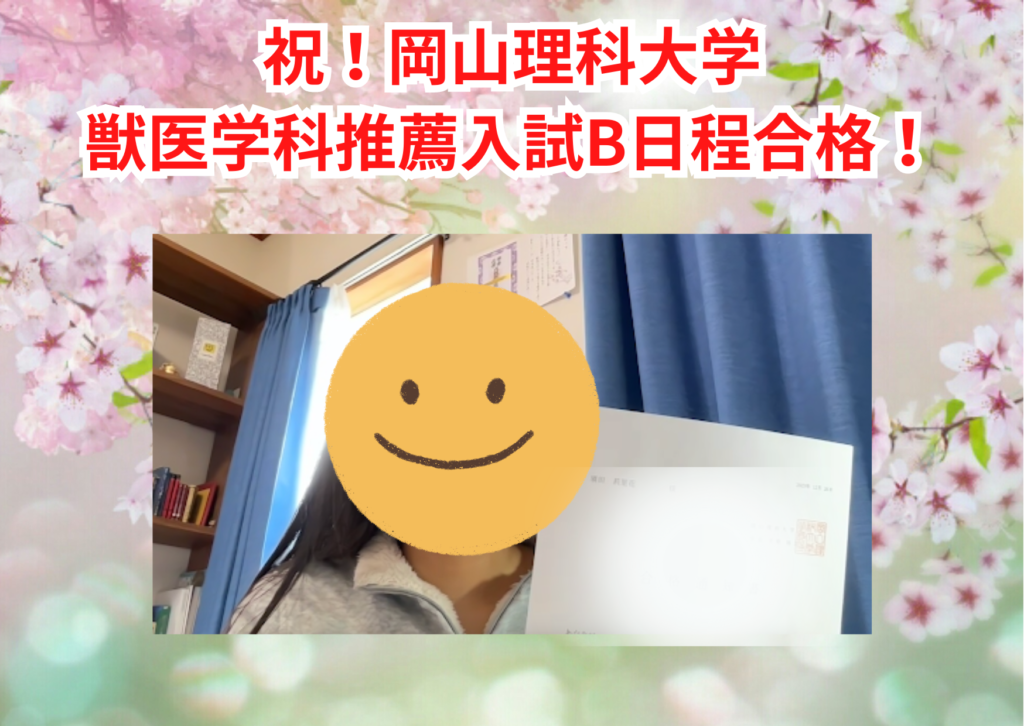 祝!🌸岡山理科大学獣医学科合格!!