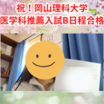 北里大学の合否が出た後は、合格機会を少しでも増やすために岡山理科大学の推薦入試を先生と相談しすぐに出願しました。