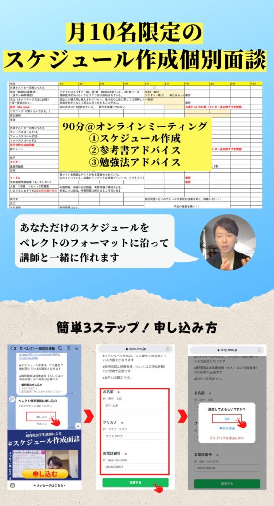 べレクトでは、スケジュール個別面談を毎月10名限定で実施しております。